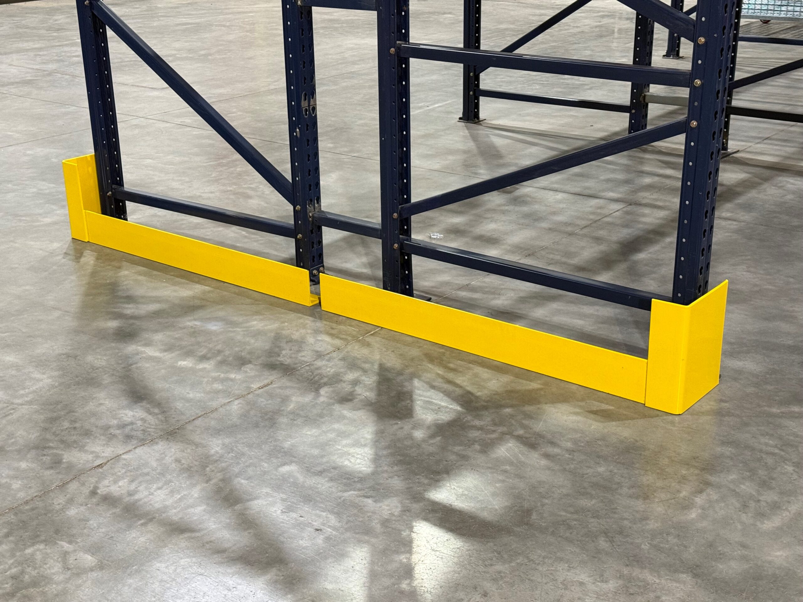 Forklifts enter, exit, swing, and turn, creating the highest probability of impact at the end of each aisle. Our L-shaped protectors form a shield around the exposed upright frames, helping absorb and deflect the force of collisions. By reinforcing this high-risk location, you reduce the chance of structural damage to your pallet rack system and maintain the integrity of your storage operation.