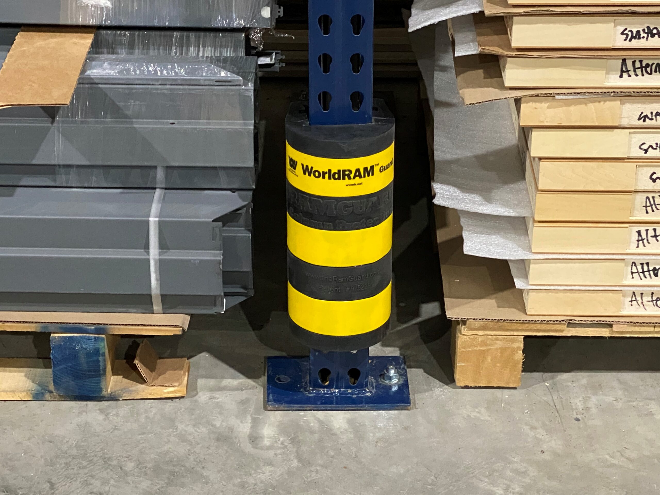 WorldRam Rubber Post Protectors are engineered to protect pallet rack uprights from forklift damage. WorldRam features a hybrid design that combines industrial rubber with internal steel reinforcement. This construction absorbs and disperses impact energy better than plastic-only guards, helping extend the life of your rack system and reduce repair or replacement costs.