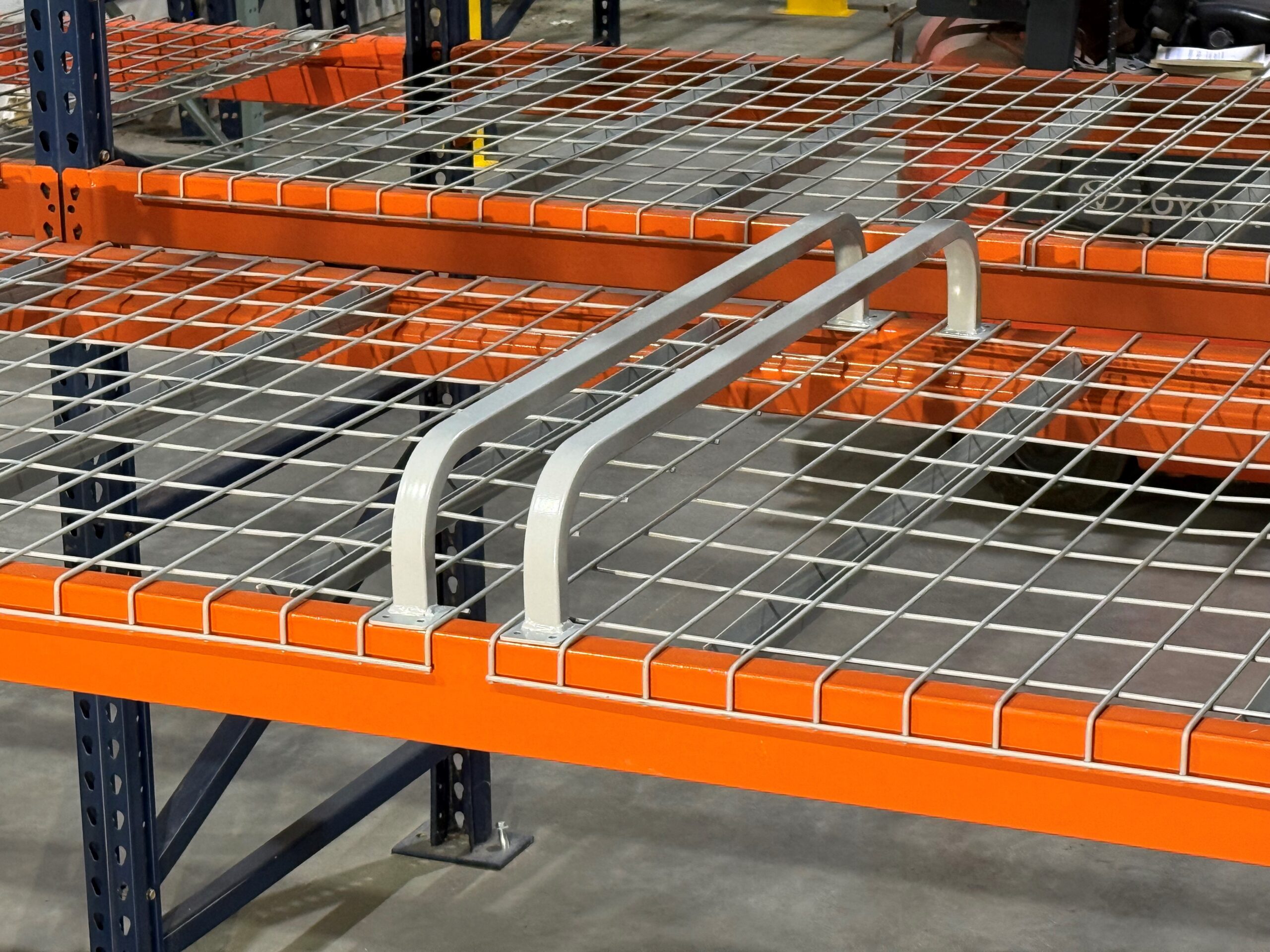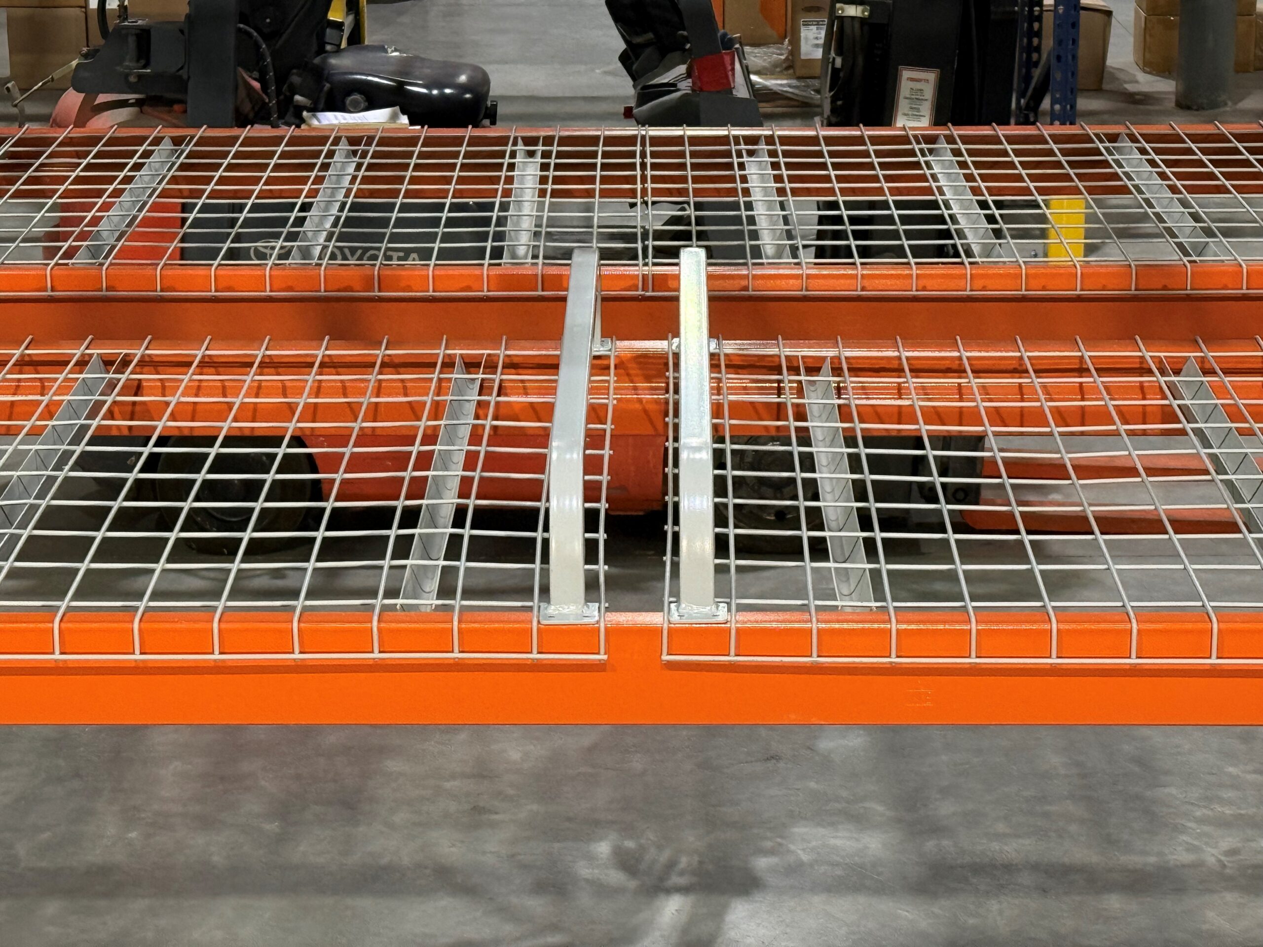 Our Pallet Dividers and shelf separators are designed to work with punched corrugated steel decking. These dividers for industrial buildings have been designed to meet RMI (Rack Manufacturers Institute) specifications, specifically NFPA 13. NFPA stands for National Fire Protection Association and #13 which is the standard that represents the sprinkler code.
