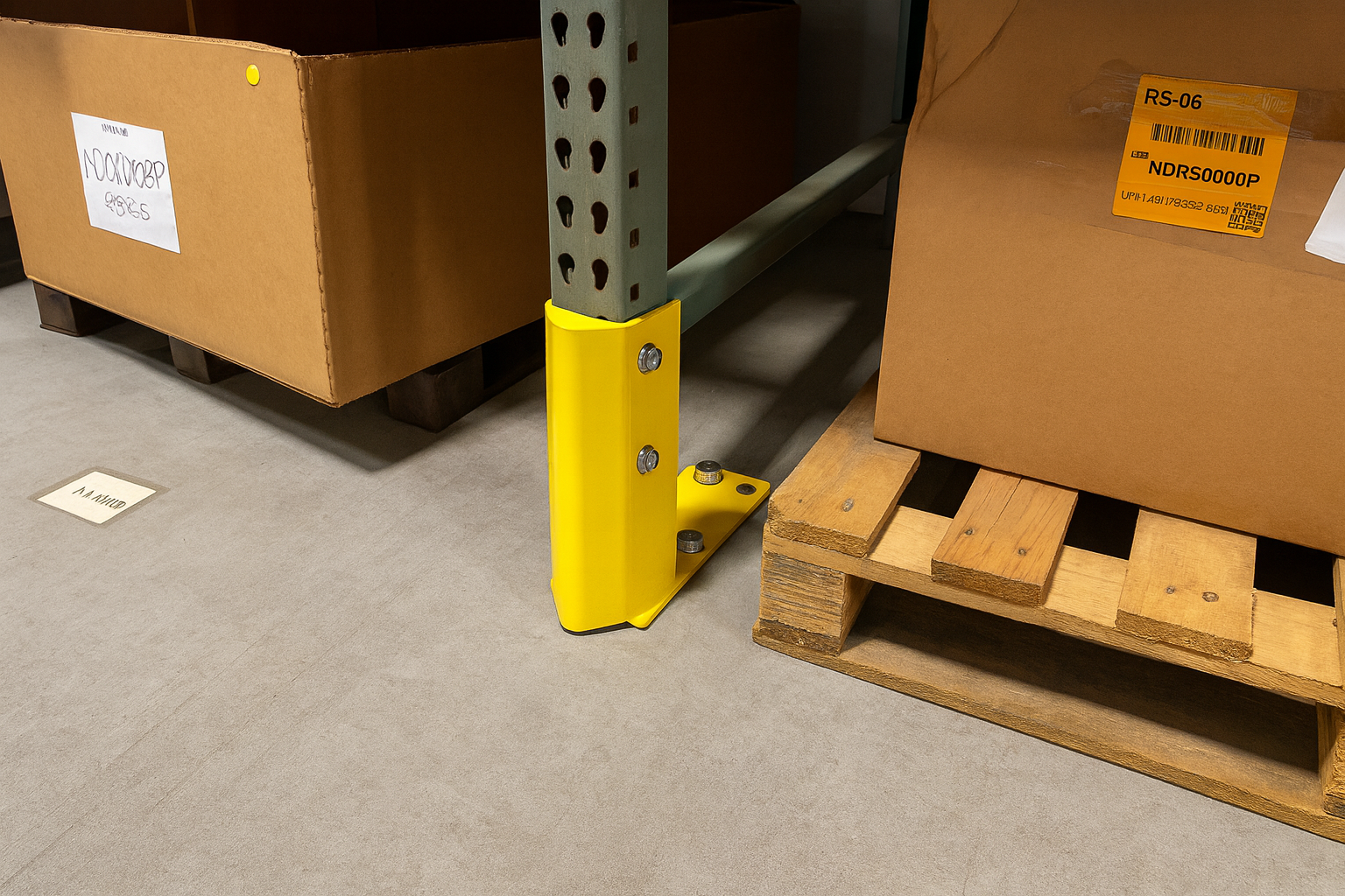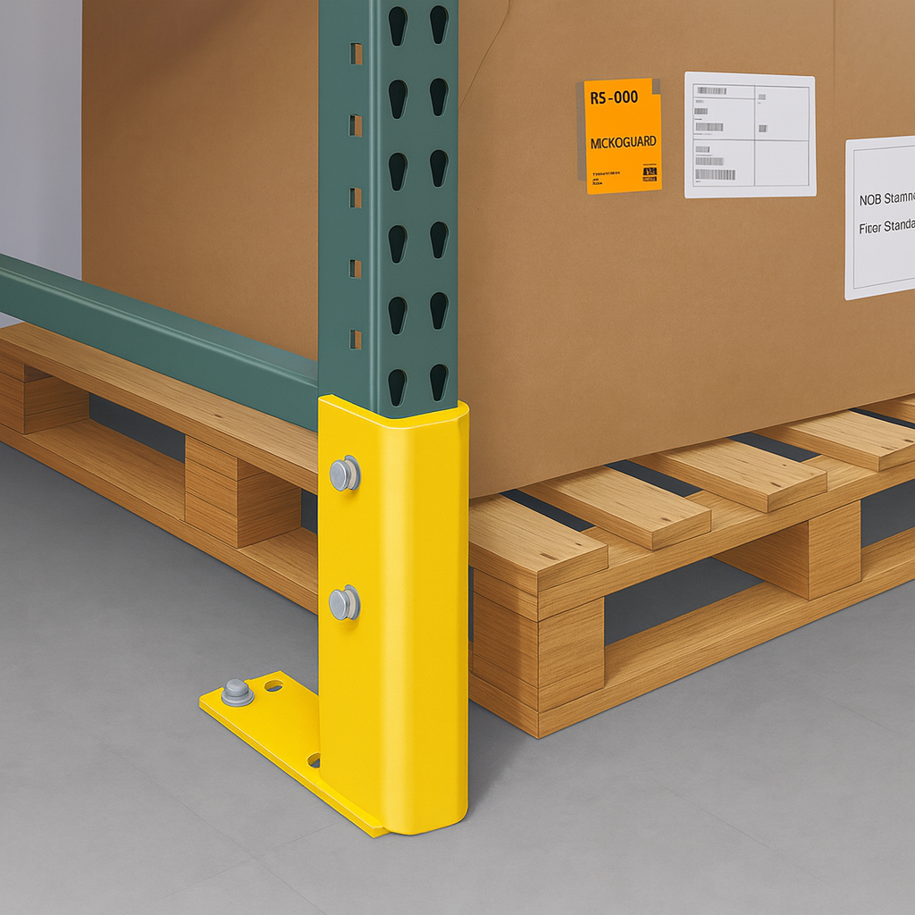 The bolt-on design eliminates the need for cutting or welding. This lets you do in-place installation even while racks are loaded (with proper safety precautions). The V-nose deflector design provides protection against pallet jack and forklift impacts by diverting force away from the column, which prevents additional structural damage. At just 16 lbs., this kit fits standard rack frames where the bottom strut is 6″ above the floor. This makes for straightforward retrofitting without complete replacement of the upright. The safety yellow powder coat provides visibility and resists corrosion. The complete hardware package means everything you need is included for fast installation.